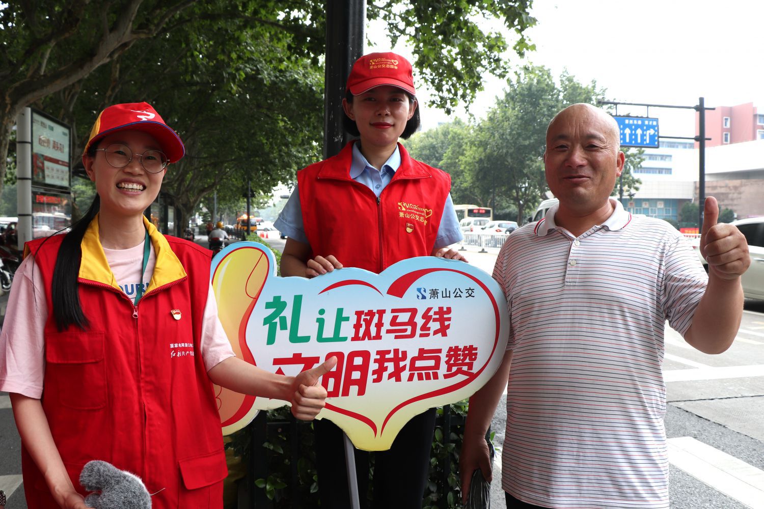 活動伊始,黨員志愿者們乘坐707路公交巾幗文明線沿途觀察了各重點路段行人通行情況,以換位的角度體驗了公交駕駛員禮讓行人的感受。隨后一行人兵分兩路來到蕭紹路公交站和長途汽車總站斑馬線開展禮讓勸導。