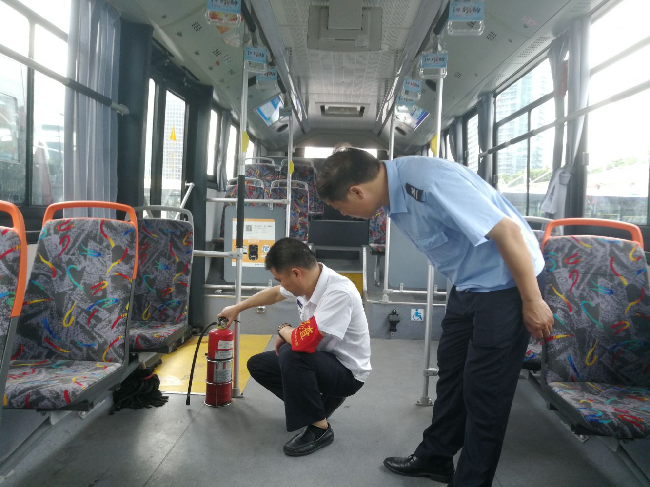 每到一處,檢查組都與職工干部進行了細致的交流,詢問了夏季安全生產情況,同時對各場內加油加氣站、倉庫、停車場、維保作業現場等重點部位的消防設施、消防器材、安全標志和用電設施等進行了全面檢查,并隨機對公交車上的破玻器、應急錘、滅火器、應急門等逃生設備進行了抽查。特別是針對滅火器,檢查組逐一打開滅火器箱,仔細查看有效期和完好率,認真檢查滅火器壓力大小、有無銹蝕,嚴把消防安全關。對發現的問題要求能現場整改的進行現場整改,不能現場整改的限時整改,對限時要求整改的,必須在時限內整改完畢。