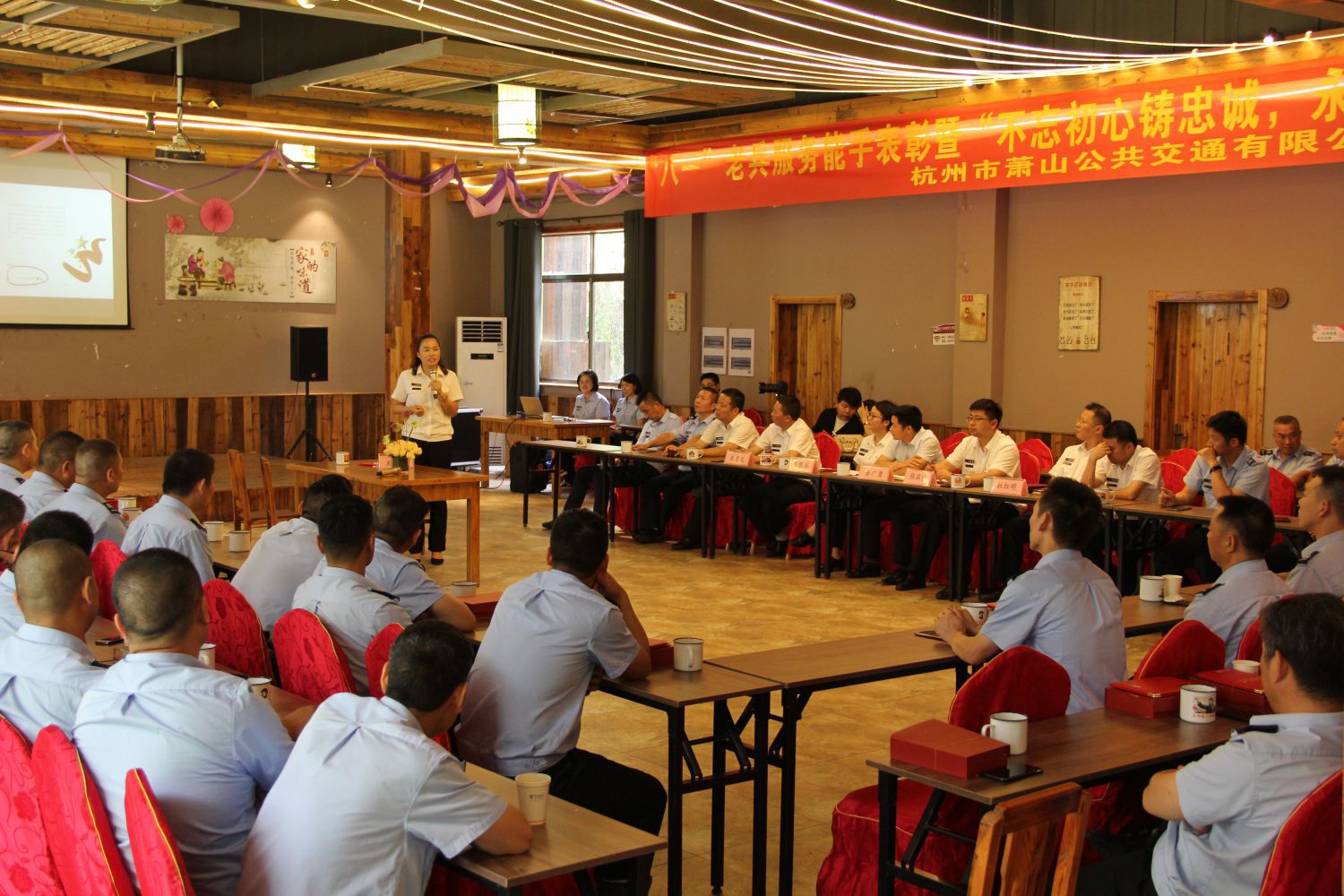 為充分發揮退伍老兵內在優勢和示范帶動作用,8月11日上午,蕭山公交隆重舉行“八一”老兵服務能手表彰暨“不忘初心鑄忠誠,永葆本色立新功”交流座談會。蕭山區退役軍人事務局黨組成員、副局長李廣勇,公司班子領導、各車隊隊長、支部書記、老兵先進個人、新媒體記者等共計70余人參加活動。