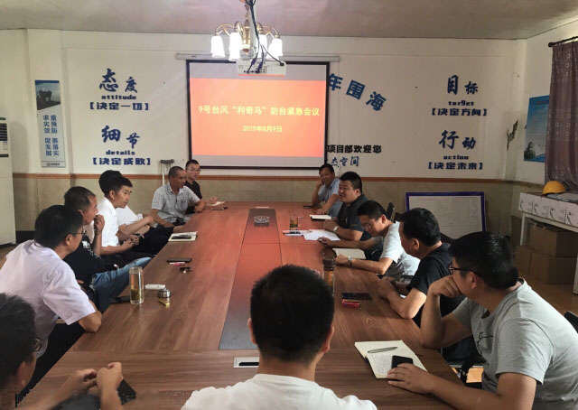 第一,高度重視,加強戒備,提高防臺意識。2019年8月9日上午,蕭山區浦陽江治理工程三期緊急組織項目部全體成員、工區負責人以及各班組組長召開了“9號臺風利奇馬防臺緊急會議”,對施工現場、民工宿舍進行了一次全面檢查,要求對工棚全部進行加固,施工現場模板統一堆放并進行覆蓋加固防止臺風吹散,對現場安全警示及標志標牌及水馬進行撤離或加固。第二,狠抓落實確保防臺準備工作落到實處。在臺風來臨之前,項目部成立了防臺應急小組,明確各小組成員職責,要求全天候通訊暢通暢通,做到能夠隨時應急;落實防臺機械設備和搶險物資,為防臺奠定堅實的物資基礎。第三,全面排查隱患,確保安全。全體項目部成員在對工地現場進行全面檢查,排除隱患,確保安全。臨建設施加固68間,共轉移民工85人。成立防臺信息聯絡小組,24小時關注天氣變化,臺風走向,以及每隔1小時報備災情信息;采取24小時值班制度,并每隔2小時,結伴巡查。第四,密切關注天氣變化,加強值班和報送制度。成立防臺信息聯絡小組,24小時關注天氣變化,臺風走向,以及每隔1小時報備災情信息;采取24小時值班制度,并每隔2小時,結伴巡查。第五,風雨過后,安全抗臺。本次抗臺后,項目部值班人員一早對工地及生活區進行排查,摸清受災情況,爭取早日全面恢復施工狀態。人員轉移110人;臨建設施加固68間,臺風來臨期間無損壞;圍擋無損壞;道路積水不多,并已及時清理;高邊坡無塌方等損壞情況;水位最高5.6米,無人員傷亡。