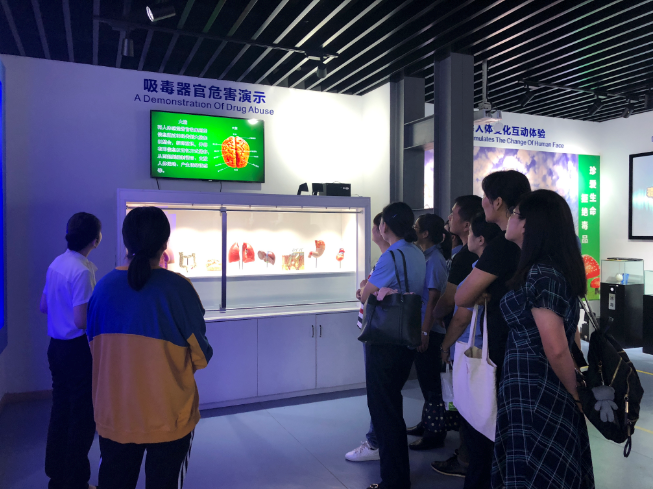 上午,大家走進蕭山區安防體驗中心,在館內工作人員的指引下,參觀了公共安全館中的禁毒板塊,大家通過觀看仿真實物、視頻圖片,聽取真實的案例及互動體驗等方式,清晰深刻地了解了毒品的本質、毒品給人類和社會帶來的危害及禁毒工作的重要性和嚴峻性。