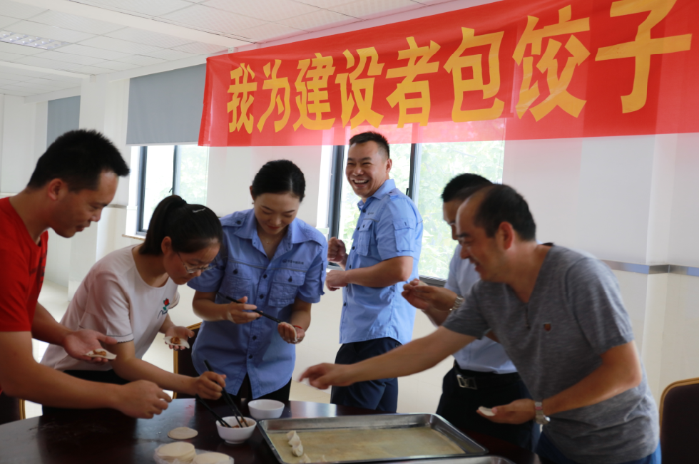 最后,交投集團總經理徐寧軍與紀委書記郭維濤向建設者代表發放了中秋月餅。臨時黨支部還邀請各位建設者代表到食堂一起包餃子,吃中秋團圓飯,活動中每位建設者都露出了舒心的笑容。