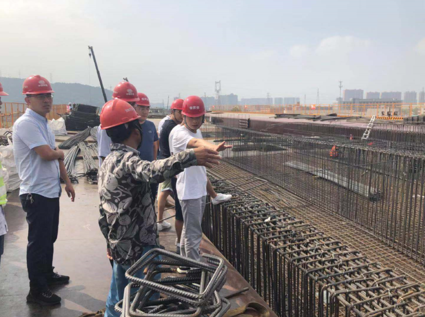 楊總首先查看項目現澆梁及橋面系施工情況,現場聽取了有關施工進展情況工作、工期節點安排、人員設備投入等方面的匯報,對目前的工作推進表示肯定。并提出明確要求:第一要抓緊安全、質量、文明施工,落實安全為第一要務;第二項目部合理安排施工計劃,細化施工節點;第三進一步加強施工管控,及時調整和優化施工方案,確保如期完成施工生產任務,爭取實現年度建設目標。