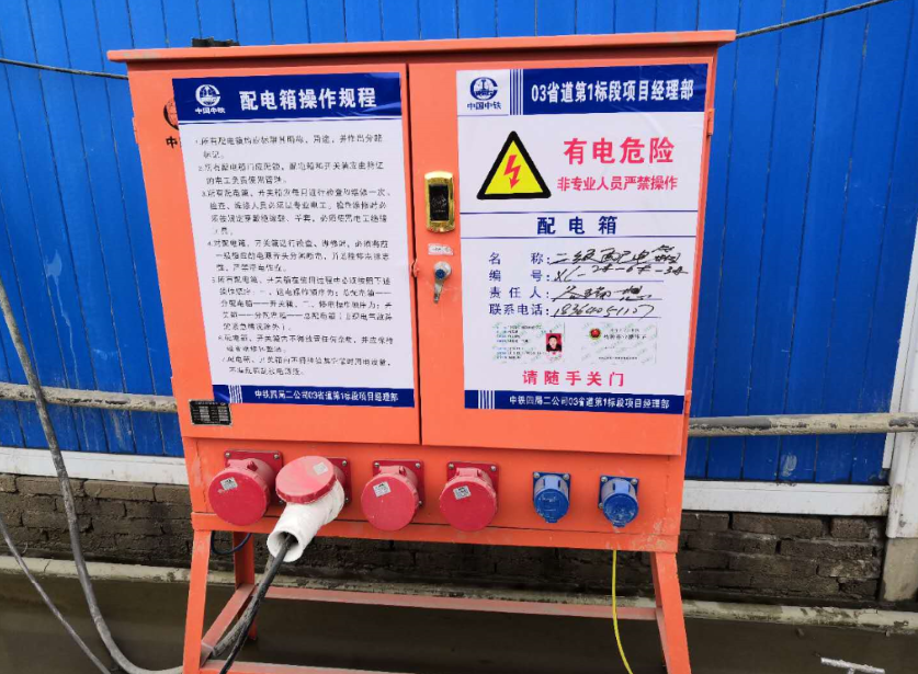 四是創(chuàng)技術(shù)。提高安全建設(shè),便捷施工操作,發(fā)展技術(shù)創(chuàng)新。03東復(fù)線(xiàn)高架南延一標(biāo)段采用航空配電箱,專(zhuān)職電工提前接好電纜接頭,作業(yè)人員取電直接插入,方便且效率高。鋼桿支架采用盤(pán)口支架和定型臨邊安全防護(hù)網(wǎng),功能齊應(yīng)用廣,安全性好,使用壽命長(zhǎng),搭拆更簡(jiǎn)便。