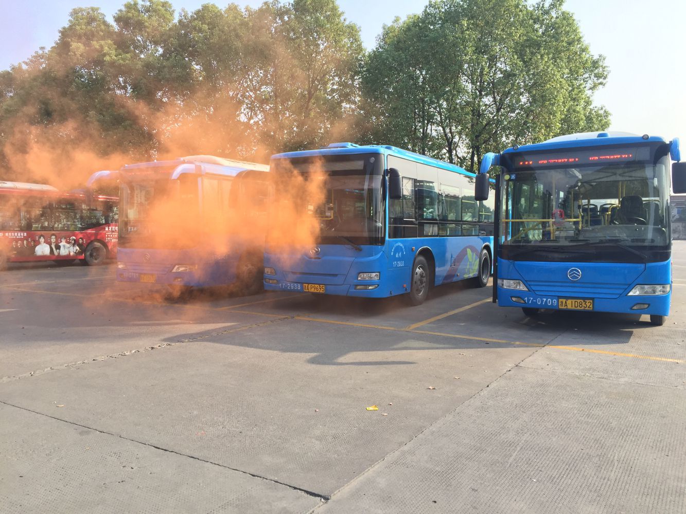 上午9時,演練正式開始,一枚煙幕彈在公交車底部燃燒,該公交車開始冒煙,9時25秒,一名保安在巡查時發現突發情況,立即使用4KG手提式干粉滅火器進行撲救,隨后進行上報并報警,9時30秒時,場站監控室發現 “火情”,拉響警報,9時1分10秒通惠路站一車隊、二車隊、五車隊及物業消防應急隊伍趕到現場,用4KG手提式干粉滅火器進行撲救,場站司機迅速疏散 “起火”公交車周邊車輛,9時1分45秒第一輛車被安全疏散,9時2分25秒義務消防隊員啟用消防栓,9時2分35秒消防水帶出水,9時3分45秒火勢撲滅,警報解除。