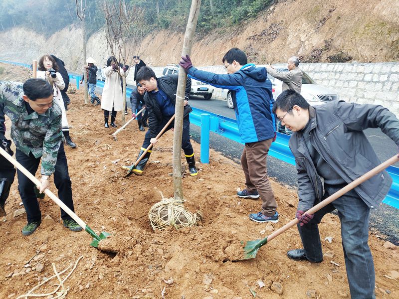 新年上班第一天,在林道邊植上一片樹,給新年種上一片新愿景。參加植樹的人員斗志高昂地挑選好工具,大家分工合作,扶苗、整地,現(xiàn)場的氣氛非常熱烈,大家忘記了寒冷,手持鐵鍬,干勁十足,將一棵棵早櫻和黃山欒樹種植在林道邊,同時也種植下了對山林的綠色希望之春。