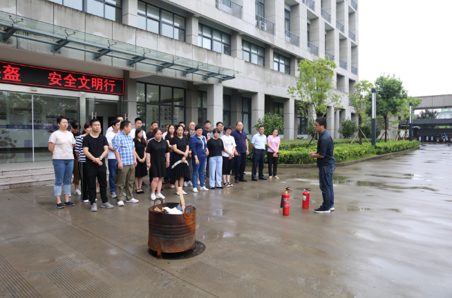 下午2時,從按響消防報警器開始,消防主機蜂鳴報警,各樓層人員聽到警報后有序逃生疏散至行政大樓廣場,為了能讓大家更清晰的了解和使用滅火器,由公司安全員講解滅火器的類別和使用方法,并安排了參加演習的人員集中開展了使用滅火器進行明火撲救實戰演習。