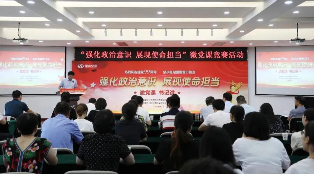 為慶祝建黨99周年,落實我區強基固本年活動精神,響應全域黨建大比武部署,進一步營造黨建領域比學趕超氛圍,緊緊抓牢支部書記這一黨組織的“牛鼻子”與“關鍵少數”,增強守初心、擔使命的思想和行動自覺,7月16日,由區委組織部主辦,蕭山交投集團承辦的區屬國企組“微黨課·書記講”競賽活動舉行。