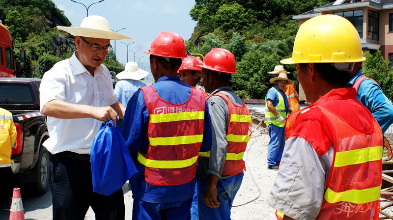 8月18日一早,由總經(jīng)理葉利民和黨支部書記朱華生分別帶隊(duì),分二組到南片、東片項(xiàng)目和林道工地進(jìn)行慰問,看望在工地一線辛勤工作的建設(shè)者們,向他們送上清涼慰問品,并叮囑他們?cè)诟邷仄陂g勞逸結(jié)合,注意防暑,保重身體。