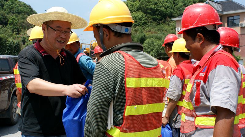 八月的蕭山驕陽似火,酷暑難耐,而我們的施工人員冒著烈日仍堅(jiān)守在工地一線,路橋工程公司領(lǐng)導(dǎo)心系一線職工,由工會(huì)與行政聯(lián)合組織開展“高溫送清涼”慰問活動(dòng)。