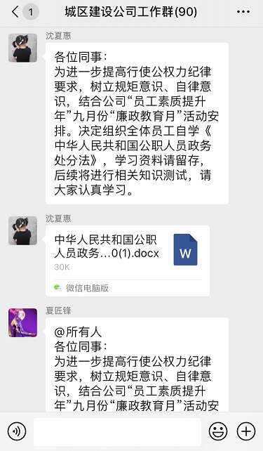 為進一步強化公司黨風廉政建設,根據公司“員工素質提升年”——9月“廉政教育月”活動的安排,城區建設公司組織全體員工組織全體職工自行學習《中華人民共和國公職人員政務處分法》,并開展線上廉政知識測試。
