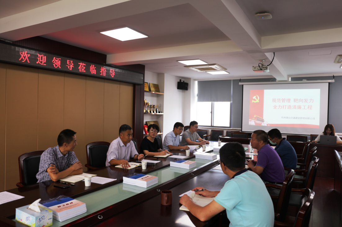 9月29日上午,蕭山區(qū)第九紀(jì)檢組組長(zhǎng)余華英一行來(lái)交通建管公司檢查清廉國(guó)企創(chuàng)建工作,交通投資集團(tuán)紀(jì)委書記郭維濤隨同指導(dǎo)。首先由我公司黨支部書記楊涌介紹了公司廉政建設(shè)情況,從公司的制度、臺(tái)賬、宣傳入手,提高認(rèn)識(shí)站位,理清建設(shè)思路,從中錘煉隊(duì)伍素質(zhì),打造清廉隊(duì)伍。在黨建引領(lǐng)下走專業(yè)化建設(shè)道路,四責(zé)協(xié)同,共同發(fā)力,針對(duì)建設(shè)中的問(wèn)題,嚴(yán)從抓早抓小,挖地三尺,小題大做,嚴(yán)把廉政關(guān)。