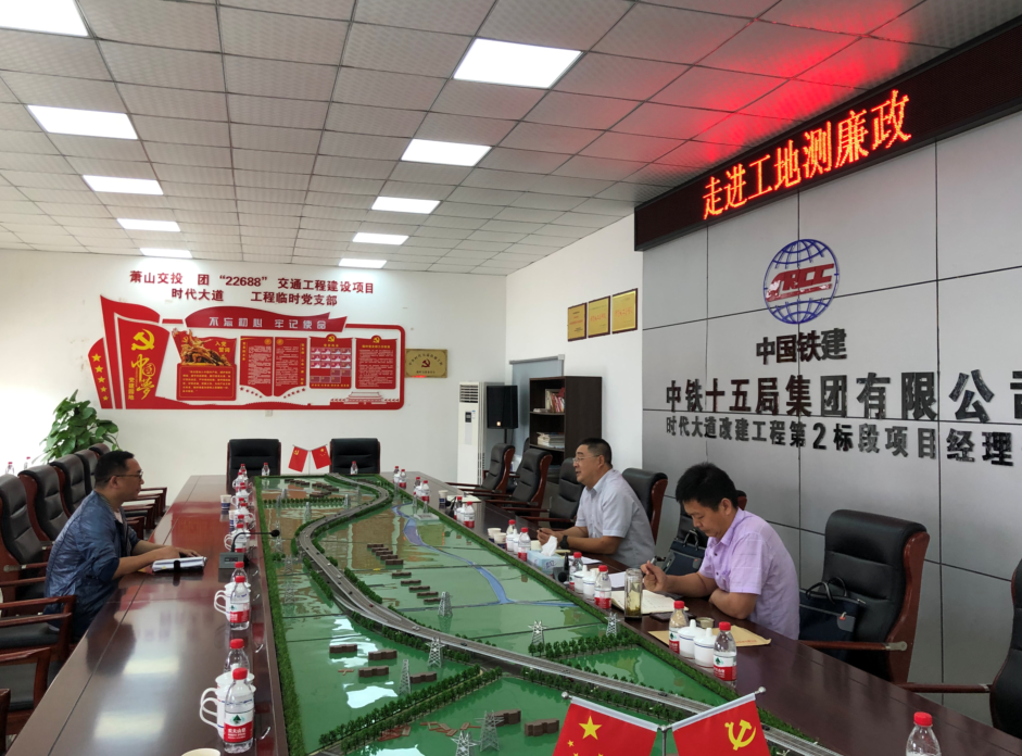 根據(jù)公司廉政建設(shè)要求,交通建管公司對(duì)所有承建項(xiàng)目開展了管理人員廉政從業(yè)及作風(fēng)效能測(cè)評(píng)檢查工作。10月15日上午,建管公司紀(jì)檢小組成員前往時(shí)代大道改建工程2標(biāo)項(xiàng)目部開展“走進(jìn)工地測(cè)廉政”活動(dòng),公司副總經(jīng)理龔鐵峰、建管公司紀(jì)檢小組成員及時(shí)代大道改建工程各施工單位代表參與此次活動(dòng)。