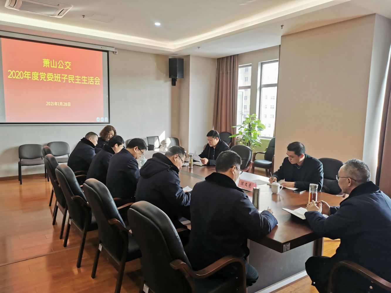 1月28日下午,蕭山公交公司召開2020年度黨委領導班子民主生活會,區交投集團黨委書記、董事長祝關翔,集團辦公室主任陳文亮蒞臨指導,公司全體班子參會。會議由公司黨委書記、工會主席王黎洪主持。