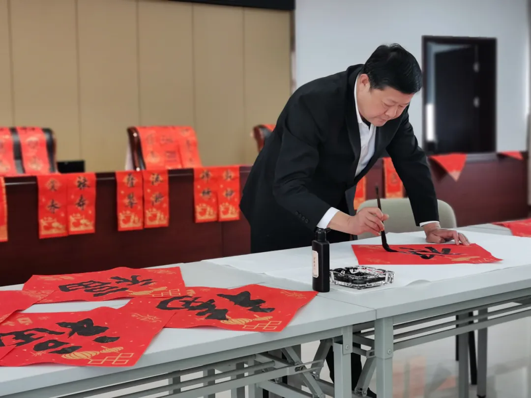 集團黨委書記祝關翔在“福”字前書寫“祝”字——寓意蕭山交投對所有建設者家人的祝福。