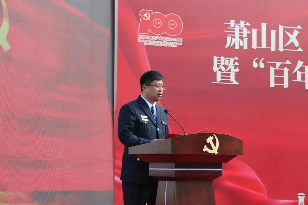 蕭山區(qū)黨史學(xué)習(xí)教育領(lǐng)導(dǎo)小組辦公室副主任、區(qū)委宣傳部副部長(zhǎng)許寶良,區(qū)委黨史研究室主任徐燕鋒為“紅色史者”授聘書(shū)、贈(zèng)蕭山黨史書(shū)籍。