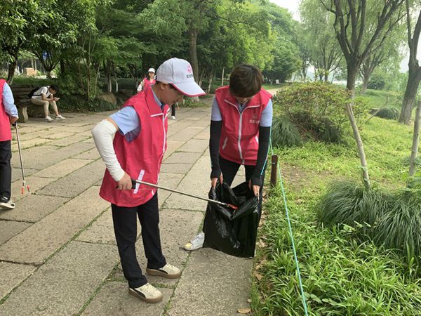 此次活動由兩個部分組成,首先女同胞們從湘湖城山廣場出發開始撿垃圾活動。大家一邊飽覽湘湖美景,一邊對游人遺棄在路旁的飲料瓶、食品包裝袋、煙頭、紙屑等垃圾進行了撿拾。經過2個小時的撿拾,大家手里的垃圾袋,都裝了不少“戰利品”。隨后向游人發放“倡議書”宣傳“五水共治”環保理念。