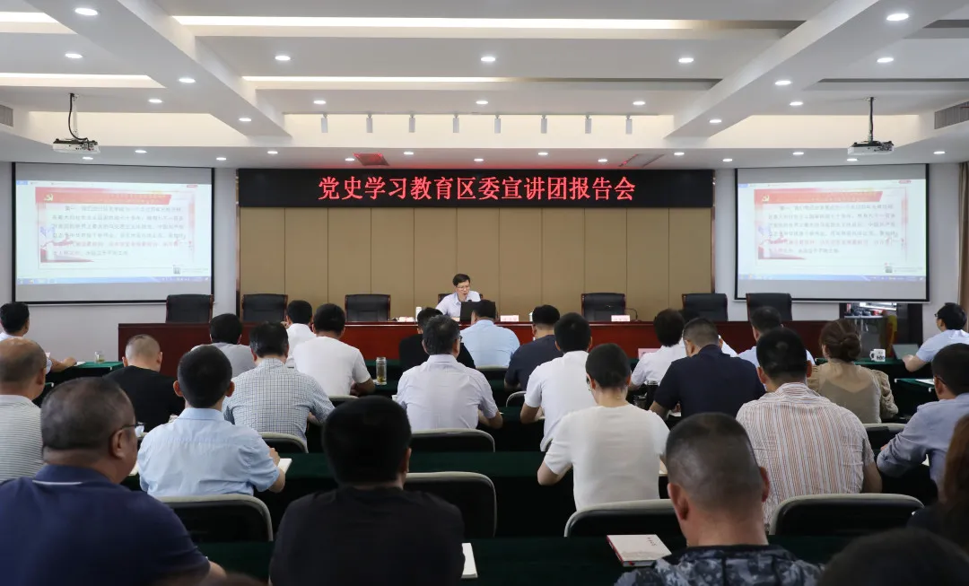 為推動(dòng)黨史學(xué)習(xí)教育扎實(shí)開(kāi)展,引導(dǎo)廣大黨員干部學(xué)黨史、講黨史、懂黨史,鼓舞黨員干部守初心、擔(dān)使命、謀發(fā)展,進(jìn)一步濃厚學(xué)黨史、悟思想、辦實(shí)事、開(kāi)新局的氛圍,根據(jù)區(qū)黨史專(zhuān)題宣講工作安排,5月14日,集團(tuán)舉辦黨史學(xué)習(xí)教育區(qū)委宣講團(tuán)報(bào)告會(huì)。會(huì)議邀請(qǐng)了區(qū)委宣講團(tuán)成員、區(qū)社科聯(lián)副主席傅浩軍作黨史學(xué)習(xí)教育宣講報(bào)告。集團(tuán)班子成員,集團(tuán)全體中層人員,各黨組織書(shū)記、黨建工作職能科室負(fù)責(zé)人、黨務(wù)工作者及團(tuán)組織負(fù)責(zé)人參加。