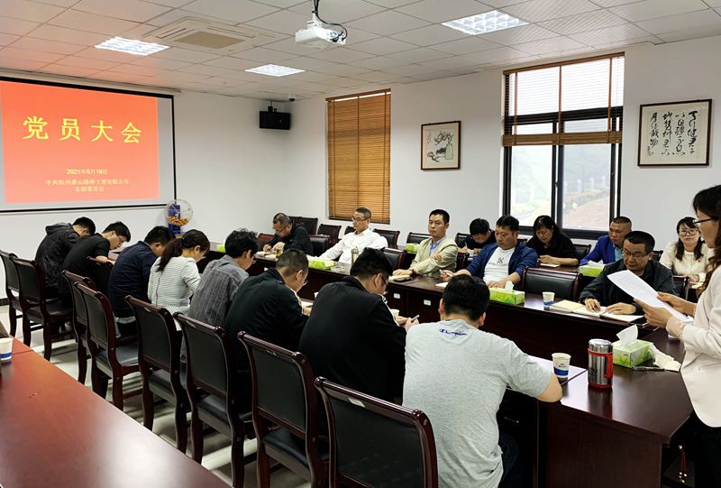 5月19日下午,路橋工程公司黨支部在公司二樓會議室組織全體黨員召開了新吸收預備黨員票決和書記領學活動。