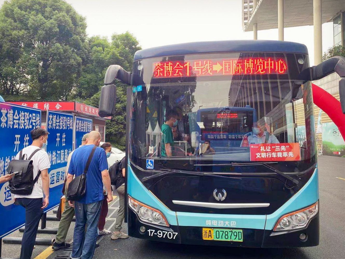 為方便市民前往茶博,蕭山公交專門開通兩條免費接送專線:茶博1號線,地鐵江陵路站至杭州國際博覽中心;茶博2號線,地鐵錢江世紀城站至杭州國際博覽中心。同時,公司還加強周邊422路、581路、519路運能,在國際博覽中心公交站安排現場管理人員,引導乘客坐公交與地鐵進行接駁。本次茶博會期間蕭山公交開通免費接駁線2條,發班552班,運送乘客2092人次。