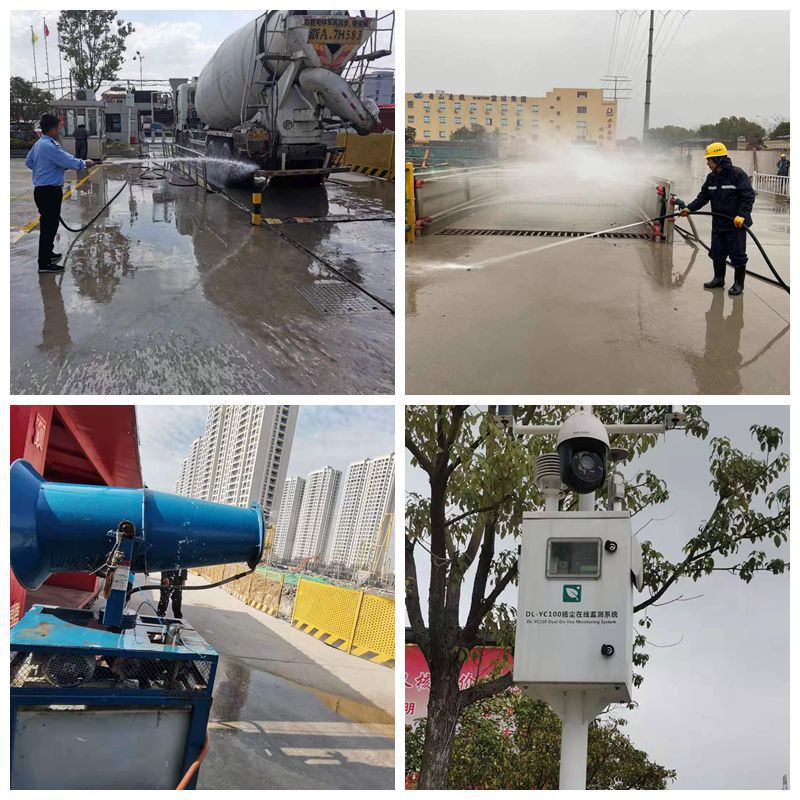 非施工作業(yè)的裸露地面、易揚(yáng)塵材料、空置 24 小時(shí)以上的土方進(jìn)行覆蓋。現(xiàn)場設(shè)置噴淋、霧炮等降塵設(shè)備,安裝揚(yáng)塵在線監(jiān)測設(shè)施并保持在線。土方開挖、回填、現(xiàn)場破拆、切割作業(yè),采用灑水等濕法作業(yè)。