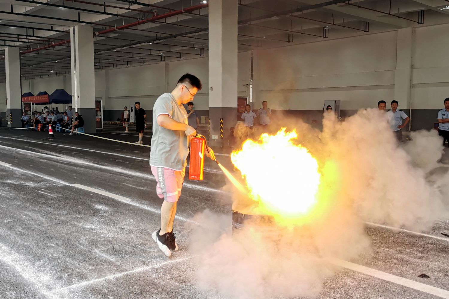 本次比武設置了消防理論知識考試、50米4公斤干粉滅火器滅火、雙手提消防水帶4×50M接力賽、消防水帶二人三帶操作等4個項目,共有10支隊伍參與角逐。隨著裁判喊出“開始!”的口令,各參賽隊迅速進入狀態(tài),選手們拋接水帶快速有力、滅火噴灑精準到位,將平日的訓練水平表現(xiàn)得淋漓盡致,贏得觀眾的陣陣喝彩,現(xiàn)場氛圍甚濃。