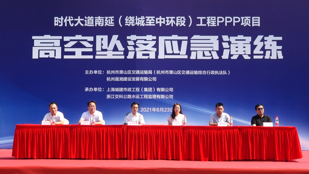 6月23日上午,蕭山區(qū)交通運輸綜合行政執(zhí)法隊聯(lián)合杭州晟湘建設發(fā)展有限公司在時代大道南延(繞城至中環(huán)段)工程舉辦2021年度高空墜落事故應急救援演練。蕭山區(qū)交通運輸局黨委書記局長、執(zhí)法隊大隊長李書春、蕭山區(qū)紀檢五組副組長汪屹靈、蕭山區(qū)交通運輸局黨委委員、執(zhí)法隊專職副大隊長章國友、蕭山區(qū)“22688”項目推進辦副主任張國雄、交通建管公司總經(jīng)理楊衛(wèi)軍等相關單位的領導現(xiàn)場觀看了本次應急演練。
