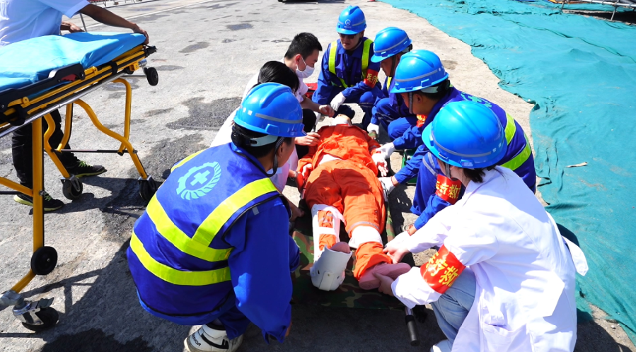 本次演練場地位于時代大道與魚浦街叉口處的施工現(xiàn)場18號墩,模擬立柱鋼平臺拆除過程中,由于防護網(wǎng)片脫落,兩名作業(yè)人員墜落受傷,圍繞這一假想事故,展開應急處置的過程。通過此次演練,檢驗了應急預案啟動、傷員搶救、險情處置、信息上報、救援指揮、善后處理等應急措施的執(zhí)行落實,各參演單位和人員進一步熟悉、掌握、運用了應急救援知識及相關的救助程序、方法,提高了應急管理救援水平,完善了應急救援體系和應急預案的可行性、緊密性和可靠性。同時,也積累了應對突發(fā)事件的實戰(zhàn)經(jīng)驗,達到了預期的目的,取得了圓滿成功。其他項目的相關負責人觀摩了本次演練。