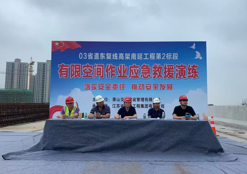 為貫徹落實“安全第一,預(yù)防為主,綜合治理”的工作方針,根據(jù)《中華人民共和國安全生產(chǎn)法》、《浙江省安全生產(chǎn)監(jiān)督管理條例》、《03省道東復(fù)線高架南延工程第2標(biāo)段事故應(yīng)急救援預(yù)案》文件要求,交通建管公司于2021年6月28日上午在03省道東復(fù)線高架南延工程項目部組織了有限空間作業(yè)應(yīng)急演練。