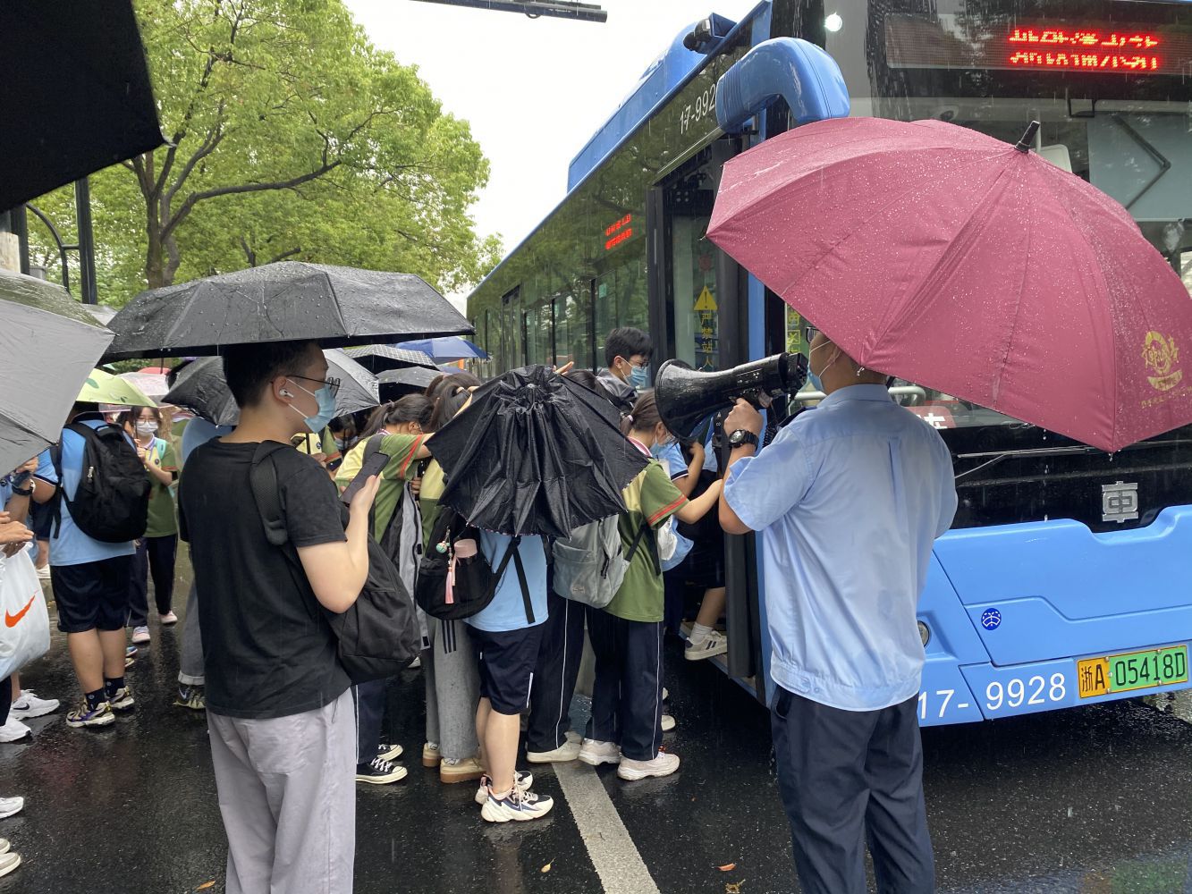 二、全力護學。為確保極端天氣下學生安全上下學,公司進一步加強求知專線客運管理,提前在專線途經道路排查道路積水風險點,并安排專人在求知專線現場做好秩序維護,以安全有序的公交服務為學生保駕護航。