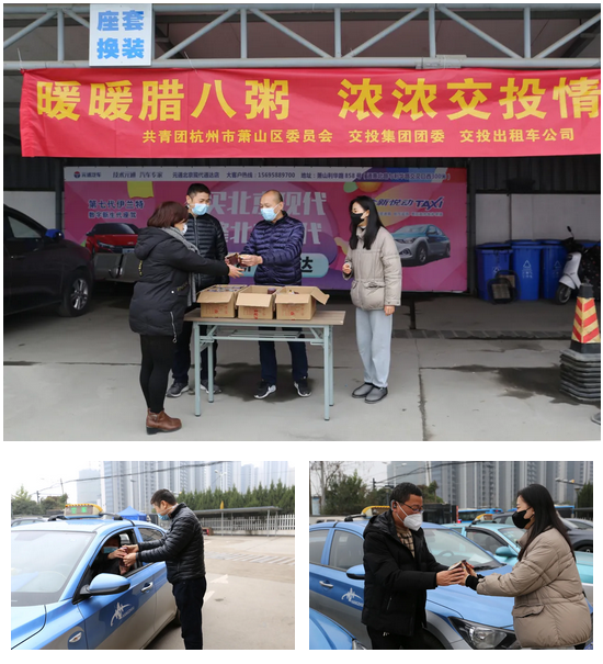 交投出租車公司行政人員在出租車服務(wù)區(qū)向廣大駕駛員發(fā)放臘八粥,并叮囑駕駛員在新的一年要加強(qiáng)疫情防護(hù),確保安全行車。