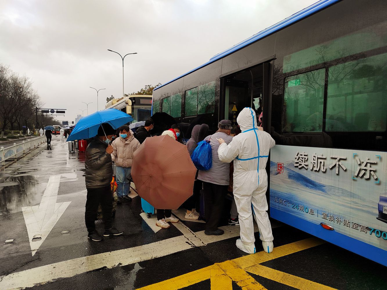 截止1月28日下午15時,蕭山公交轉(zhuǎn)運突擊隊共發(fā)車32車次,轉(zhuǎn)運涉疫人員748人次,接送防疫志愿者115人次。“疫情不退我們不退,作為一名黨員,哪里有需要,我們就到哪里去!”寒風(fēng)凍雨中,黨員司機魯思清的聲音溫暖而有力。