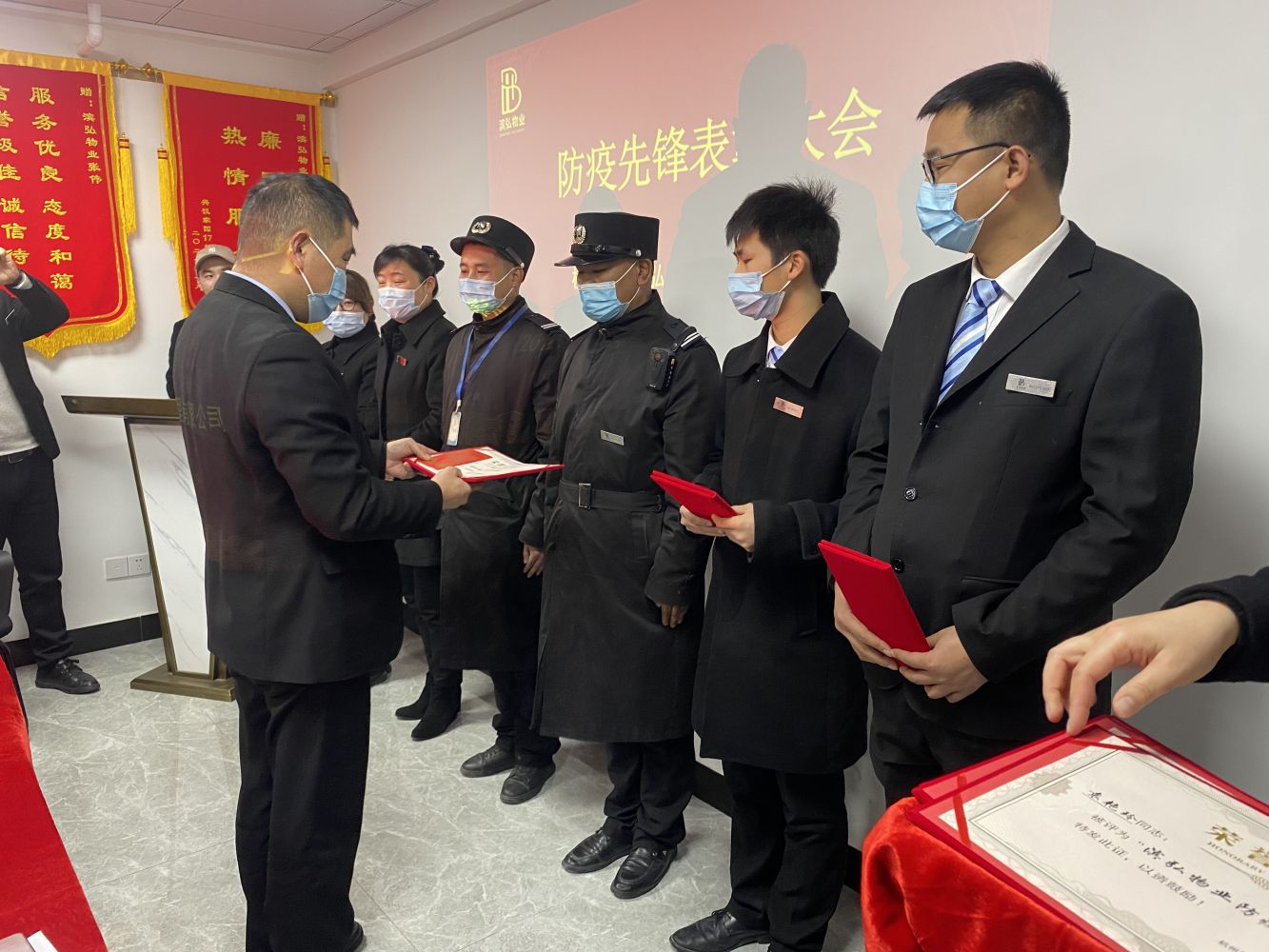 為激發(fā)公司全體員工迎難而上、共克時艱的昂揚斗志,大力弘揚敬業(yè)奉獻(xiàn)精神,杭州蕭山濱弘物業(yè)管理有限公司于2022年2月25日下午13:00在興議家園服務(wù)中心二樓會議室組織召開防疫先鋒表彰大會,對在疫情防控工作中做出突出貢獻(xiàn)的先進(jìn)個人予以表彰。