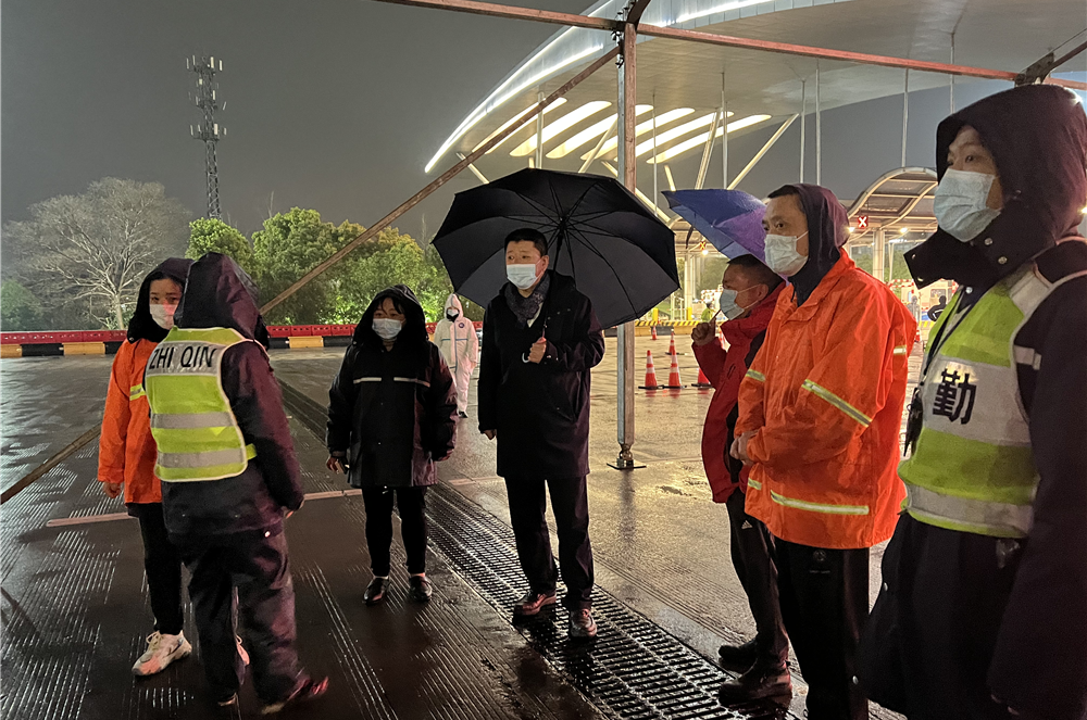 副區(qū)長方軍20日下午及晚上,前往機(jī)場公路主線收費(fèi)站檢查疫情防控工作。