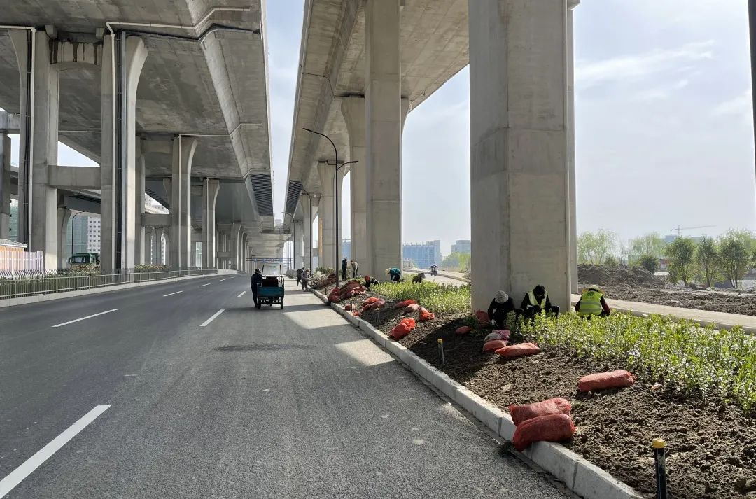 2、03東復線高架南延工程地面道路完成90%,附屬工程完成69%。4月力爭基本完成地面道路建設。
