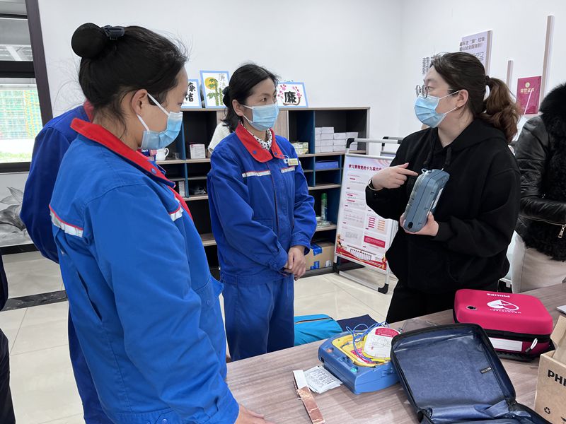 培訓活動中,老師為大家詳細講解了心肺復蘇CPR的現場操作流程,重點講解了自動體外除顫儀AED的操作步驟,并耐心指導大家參與體驗操作。AED是一種便攜式急救設備,操作簡便,可被非專業人員使用于搶救SCD(心源性猝死)患者。為進一步完善加油站公共急救設施,健全突發事件應急救治機制,公司已分別在建盈南、建盈北、蜀山三個站點配備AED設備。