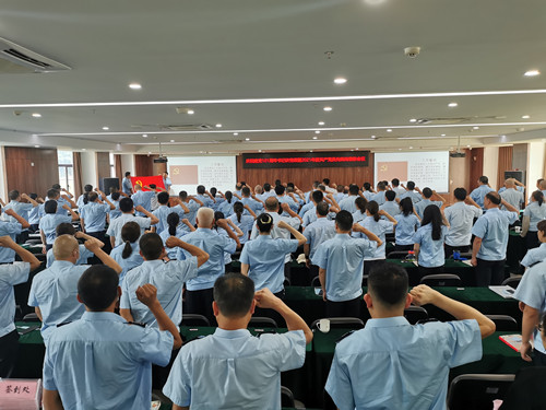 公司黨委委員、副總經理韓興良宣讀《關于表彰2021年度共產黨員先鋒崗的通知》表彰文件。集團領導與公司班子為2021年度共產黨員先鋒崗授牌,全體參會人員重溫入黨誓詞。