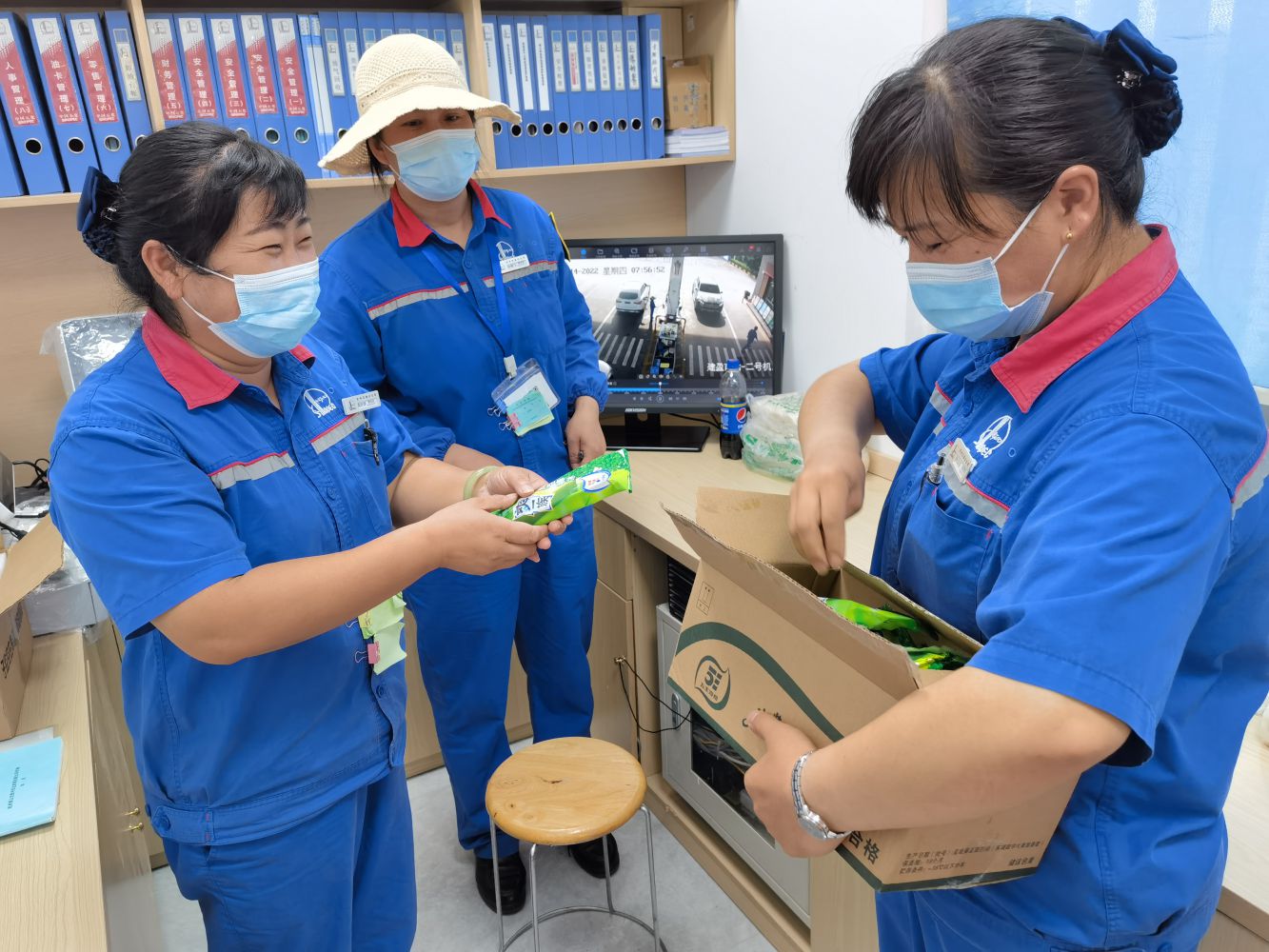連續的高溫天氣,整座城市熱浪滾滾。面對高溫的炙烤,交投能源公司的“藍精靈”們依然24小時不停歇地堅守在一線崗位上,堅持著服務保供和為美好生活加油的決心。酷暑考驗著一線的“藍精靈”,也時刻牽動著領導們的心,董事長親自指派有關部室先后為各加油站送去了棒冰,并叮囑各站長準備了綠豆湯為大家解暑。