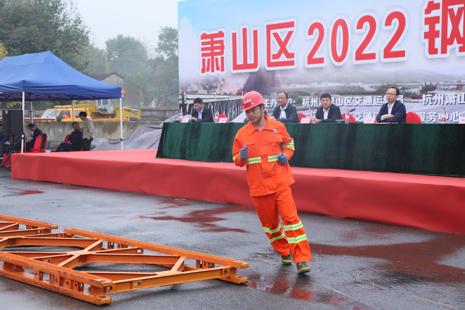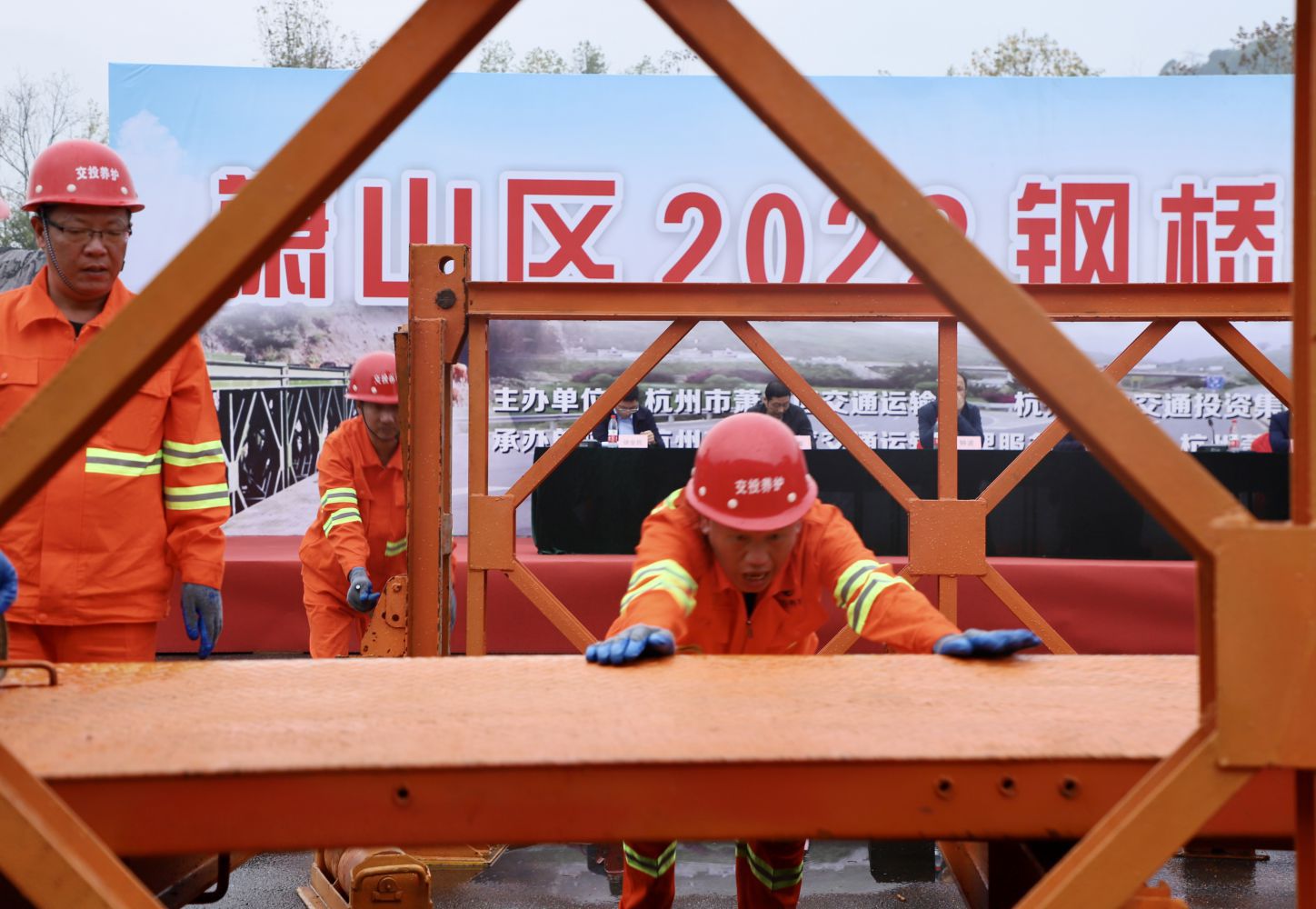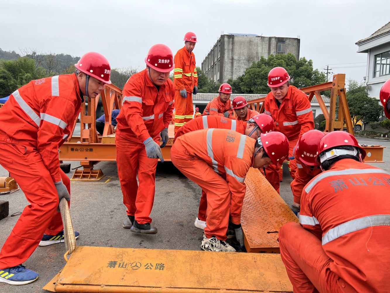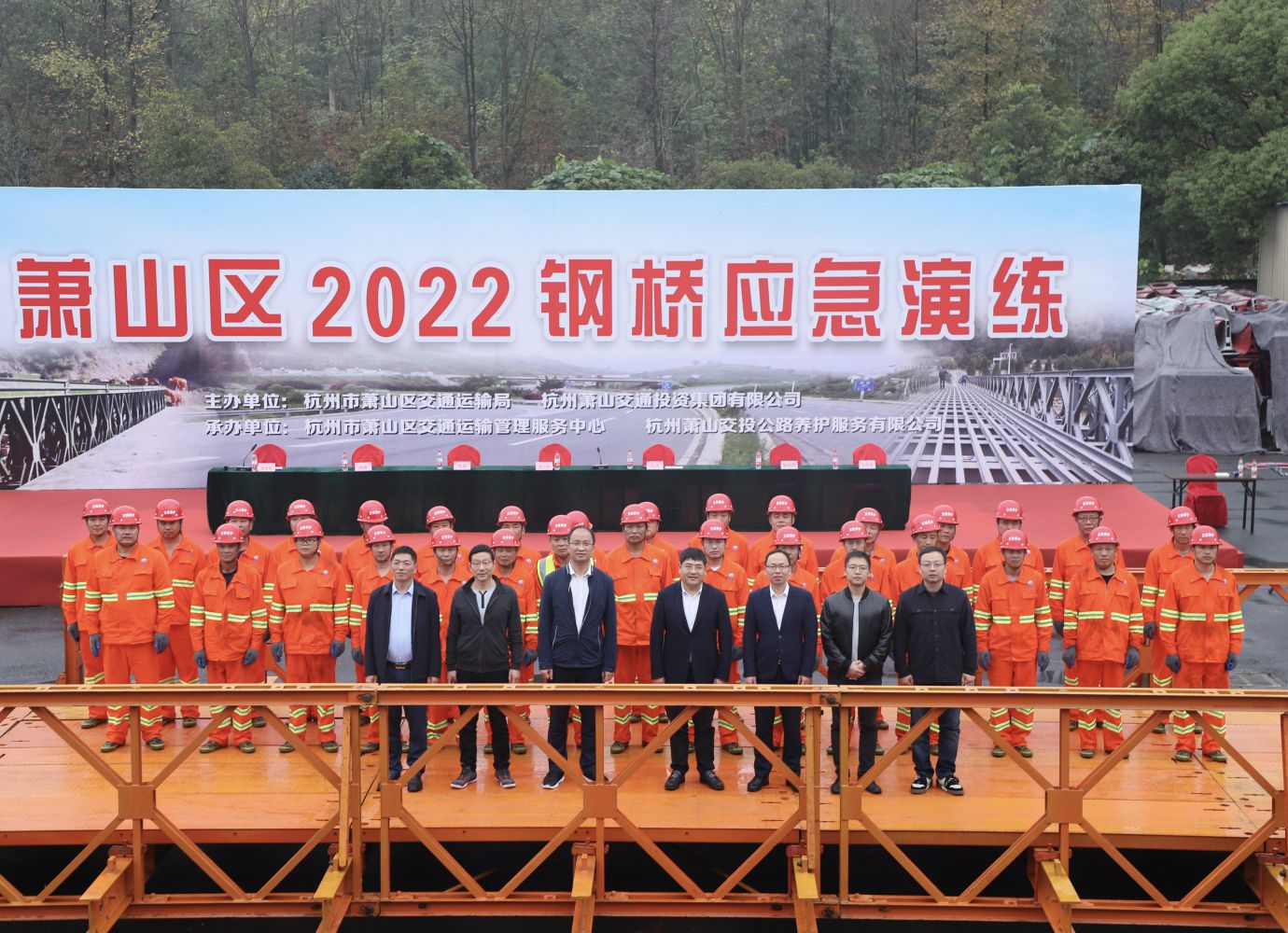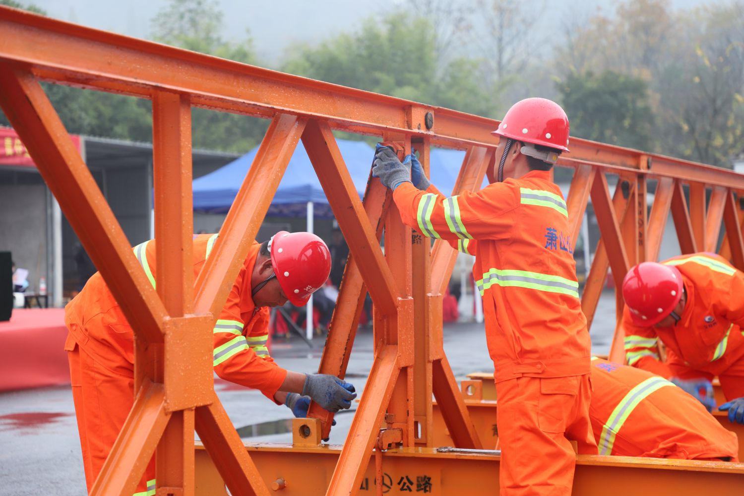 立桁架、豎支撐、架橫梁、鋪橋面板……11月22日下午,在蕭山交投公路養(yǎng)護(hù)服務(wù)有限公司樓塔道班內(nèi),30名訓(xùn)練有素的應(yīng)急搶險(xiǎn)隊(duì)員,在20分鐘內(nèi)架設(shè)起一座跨徑為12米的321型裝配式公路鋼橋,展現(xiàn)了熟練的橋梁架設(shè)技能。