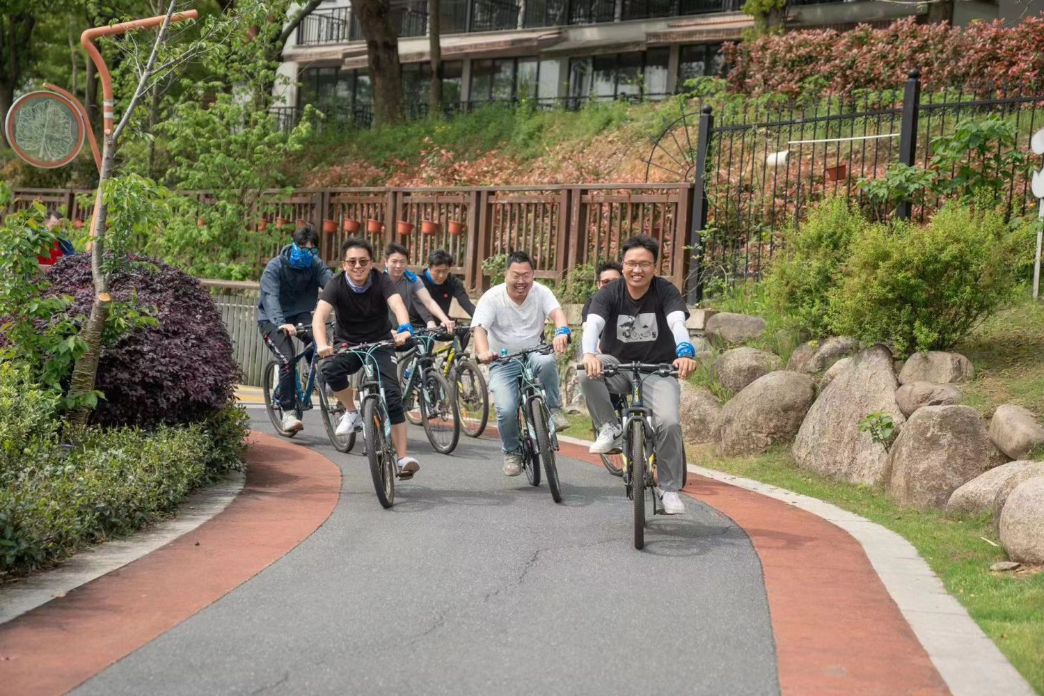在青山湖騎行綠道中