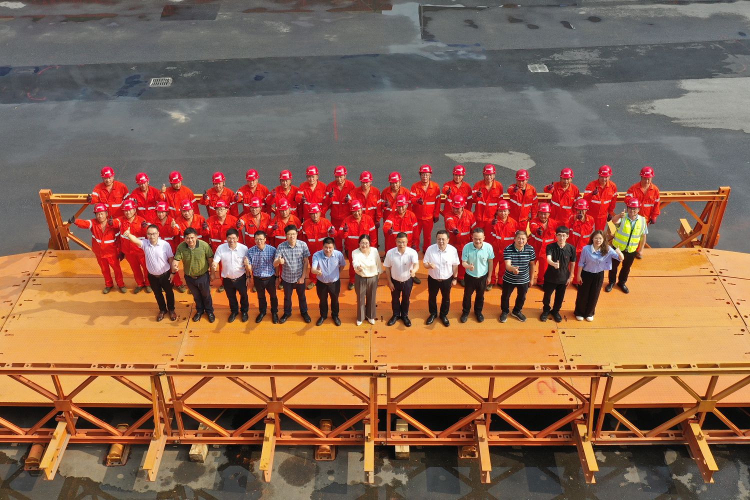 在河水暴漲,流水湍急,巡查橋臺處被洪水沖塌或主梁板開裂,影響車輛和行人通行,打開《公路橋梁突發(fā)事件應急預案》,宣布啟動防汛應急響應,迅速集結公路應急響應隊伍并上報上級相關部門報送信息。搶險隊伍先架鼻架,再架正橋,推橋,利用平滾把橋推到河岸的對面,落橋,拆鼻架,搭引橋,鋪橋板,緊螺栓,完成15米長、3.7米寬的貝雷橋架設作業(yè)。