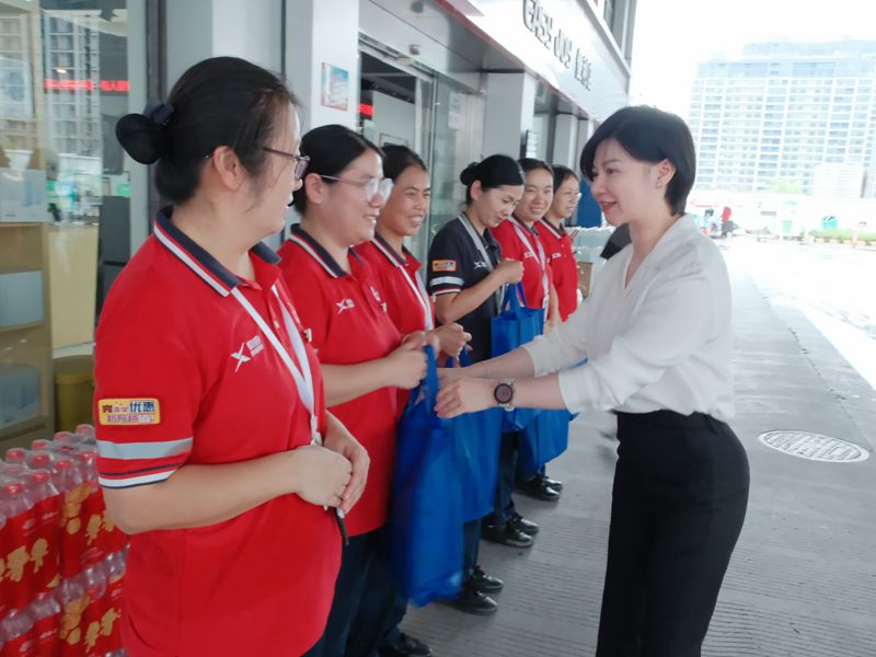 每到一站,公司領(lǐng)導(dǎo)和一線員工親切交談,了解員工的工作生活近況和身體狀況,叮囑他們要注意勞逸結(jié)合,做好防暑降溫,確保身體健康。現(xiàn)場,領(lǐng)導(dǎo)們向高溫天堅(jiān)守在崗的一線員工們致以敬意,并送上精心準(zhǔn)備的防暑慰問品,對他們的辛勤付出表示衷心的感謝。