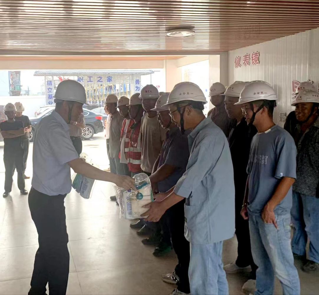 為保障公司工程項(xiàng)目一線建設(shè)者的身心健康,更好地推進(jìn)公司黨灣安置房項(xiàng)目建設(shè)。8月17上午,交通新鎮(zhèn)公司開展“送清涼”活動(dòng)。