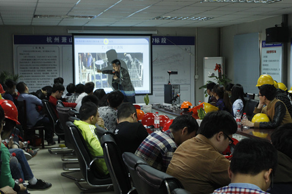 參觀活動在項目梁場進行,由工程負責人帶領分成AB兩個小組詳細解說指導,通過講解同學們了解了項目梁場的工裝配置,不同梁體的施工步驟、技術指標、生產重難點,并與現場施工工人師傅交流學習感受。在項目會議室,工程負責人為同學們做了PPT匯報,全面介紹了工程項目的整體概況和具體要求,還穿插講解了一些技術知識和學習重點,并希望同學們從中領會吃苦耐勞、精益求精的精神,把這種精神帶到將來的學習和職業發展之中。最后還進行了互動提問,同學們收獲頗豐。
