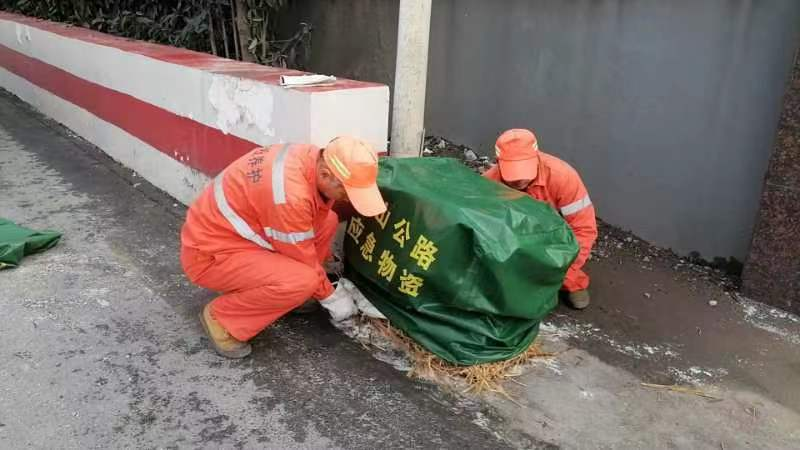 迅速出擊,合理處置。21日夜晚起,公司搶險(xiǎn)人員化身風(fēng)雪中的守護(hù)人,在重點(diǎn)路段、橋梁、高架、下穿等易結(jié)冰易路段鋪設(shè)草包、及時(shí)預(yù)撒融雪劑,進(jìn)行各項(xiàng)預(yù)防工作。