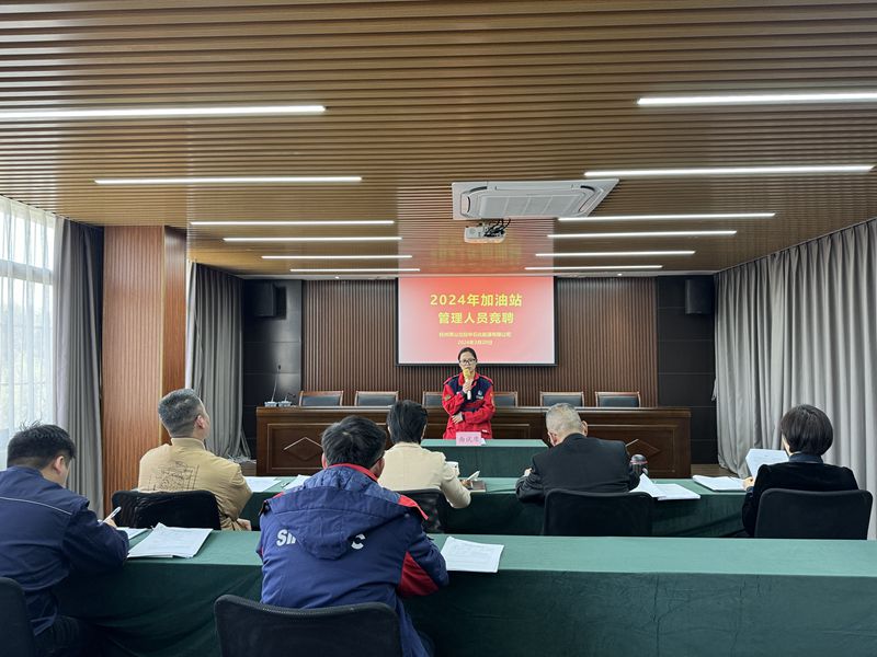 3月20日下午進(jìn)入面試環(huán)節(jié),公司領(lǐng)導(dǎo)班子、部室主要負(fù)責(zé)人及加油站站長(zhǎng)組成考官團(tuán)參會(huì)。競(jìng)聘人員圍繞個(gè)人基本情況、學(xué)習(xí)和工作經(jīng)歷等方面進(jìn)行匯報(bào),同時(shí)闡述對(duì)管理員崗位的理解認(rèn)識(shí)、工作目標(biāo)及未來規(guī)劃;在職管理人員開展述職演講,重點(diǎn)闡述個(gè)人崗位職責(zé)表現(xiàn)情況及未來工作思路。