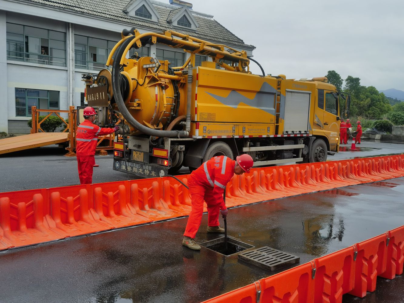緊接著,防汛防洪應(yīng)急演練拉開(kāi)帷幕。演練模擬因連續(xù)暴雨,水流沖擊導(dǎo)致235國(guó)道735K+300出現(xiàn)大面積積水的災(zāi)害險(xiǎn)情。演練內(nèi)容包括預(yù)案啟動(dòng)、指揮調(diào)度、道路清障、現(xiàn)場(chǎng)維護(hù)和排水疏通搶險(xiǎn)。示警錐放置、防洪板圍擋,各參演人員各司其職、密切配合;應(yīng)急排水車(chē)、吸污疏通車(chē)等各類(lèi)搶險(xiǎn)車(chē)輛迅速集結(jié)、有條不紊。結(jié)束后撤除路面維護(hù),恢復(fù)通行,最大限度地減輕水災(zāi)造成的損失。