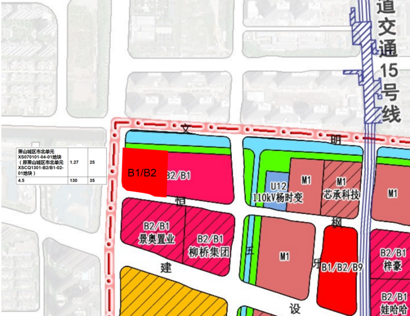 該地塊位于北干街道,東至規劃商業商務用地,南至恒楓路,西至博奧路,北至解放河綠化帶,規劃性質為商業商務用地,出讓面積12711平方米(19.07畝),容積率不大于4.5不低于1.5。