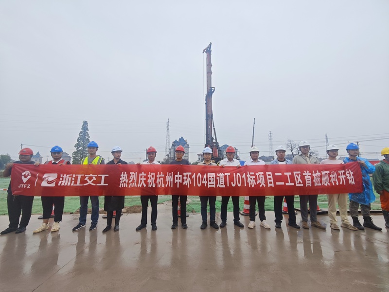 今天上午,104國道杭州河莊至衙前段工程第TJ02標(biāo)首樁、第TJ01標(biāo)二工區(qū)首樁開鉆,標(biāo)志著104國道杭州河莊至衙前段工程全面開工。