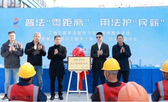 “普法先行,杜絕欠薪,讓農(nóng)民工勞有所得!”近日,普法“零距離”用法護(hù)“民薪”|工地欠薪普法宣傳與法律咨詢服務(wù)活動在浦南未來學(xué)校項(xiàng)目部開展。臨浦鎮(zhèn)黨委委員、副鎮(zhèn)長徐瑋韜,蕭山區(qū)教育局、浙江省三建建設(shè)集團(tuán)、蕭山城區(qū)建設(shè)、鎮(zhèn)勞動保障站相關(guān)負(fù)責(zé)人,項(xiàng)目建筑工人等參加。